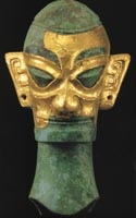 圖文:中國四川三星堆出土文物巡展至紐約 2002年03月05日 11:50 ![]() 鑲有金箔的青銅頭像是四川三星堆出土、公元前十三世紀的珍貴文物。三月四日,它和其他一百二十七件文物一起,首次亮相紐約大都會博物館,這些珍貴的人類文化遺產(chǎn)將向世人“講述”中國古蜀文化的源流與演變。