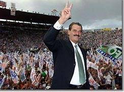 墨西哥當(dāng)選總統(tǒng)?怂菇裉炀吐殻ǜ綀D) 2000年12月1日 17:06 ![]() 中新網(wǎng)北京12月1日消息:墨西哥當(dāng)選總統(tǒng)福克斯將于今天宣誓就職,他重申,他將使墨西哥發(fā)生巨大變化。墨西哥在過(guò)去71年來(lái)都在革命路線黨的統(tǒng)治之下。 將有二十多名政府首腦參加福克斯的就職儀式。作為行動(dòng)黨的領(lǐng)導(dǎo)人的?怂故侨ツ昶咴庐(dāng)選為墨西哥新總統(tǒng)的。?怂贡硎舅麑⑴c貧窮、毒品、腐敗現(xiàn)象作斗爭(zhēng),并盡快與齊亞帕斯游擊隊(duì)達(dá)成協(xié)議。目前有5千萬(wàn)墨西哥人生活在貧困線以下。 目前革命路線黨在500席的議會(huì)里仍控制著211席,并控制了31個(gè)州中的19個(gè)。- |
