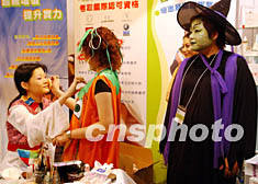 香港卓姬國際美學院,11月13日參加《香港亞太區(qū)美容展》向業(yè)內(nèi)人士介紹化妝舞會的化妝技巧。洪少葵 攝