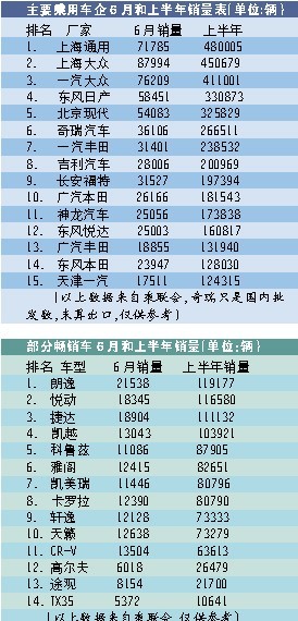 乘聯(lián)會最新統(tǒng)計顯示,上半年廣義乘用車國內(nèi)銷售累計達(dá)631萬輛,廣義乘用車批發(fā)銷量累計達(dá)672萬輛。上海通用以半年銷售48萬輛超越2008年全年的成績,奪得了半程冠軍,但在6月,上海通用7.18萬輛的銷量低于上海大眾的8.8萬輛。