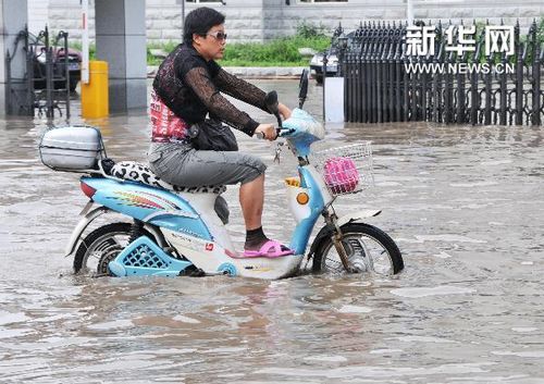 7月28日,一名市民騎車(chē)從暴雨后的長(zhǎng)春街頭經(jīng)過(guò)。受近日連續(xù)強(qiáng)降雨的影響,吉林省內(nèi)多個(gè)水庫(kù)、河流、湖泊水位猛漲,接近或超過(guò)警戒水位。在長(zhǎng)春市以及延邊、白城等城市市區(qū)內(nèi)一些地段出現(xiàn)較嚴(yán)重的內(nèi)澇。新華社記者李鳳雙攝