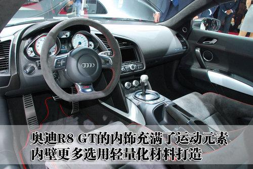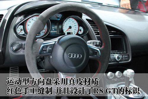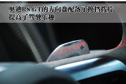 奧迪R8 GT深色調(diào)的內(nèi)飾風(fēng)格充滿了運(yùn)動元素,車內(nèi)壁很多的都是選用輕量化的材料打造,而且內(nèi)飾的材料都非常柔軟,避免在車內(nèi)出現(xiàn)磕磕碰碰時受傷。奧迪R8 GT的運(yùn)動型方向盤配備了換擋撥片,采用真皮材質(zhì),并且采用手工縫制。