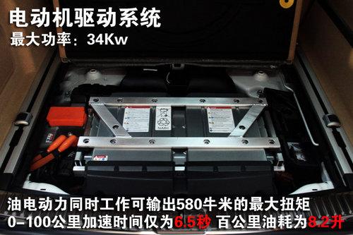 電動機位于車輛尾箱內,在288伏的電壓下,電動機可提供34千瓦的最大輸出功率,同步電機采用內置轉子設計,好處是不僅具有緊湊的尺寸,還可以作為啟動馬達和交流發(fā)電機使用。在油電共同工作時,可得到580牛米的最大扭矩,0-100公里的加速時間僅為6.5秒,而這樣的動力以往只能在8缸汽油發(fā)動機上得到,其廠商公布的百公里油耗也只有8.2升。