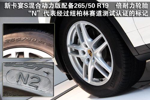 新卡宴混合動力版車型配備了雙五幅式的輪圈,在造型方面突出運(yùn)動感的設(shè)計(jì),與之搭配的是265/50 R19倍耐力輪胎,輪胎中所涉及的N2字樣則表示,該輪胎已經(jīng)過紐柏林賽道測試的認(rèn)證,這在一般品牌車型中可是很少見到的。