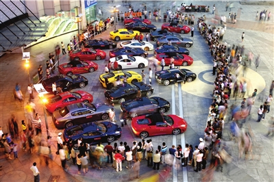 當晚7時許,23臺法拉利、瑪莎拉蒂轎車停在廣場上,四周拉起警戒線,近10名保安值守,禁止圍觀市民靠近觸摸。記者發(fā)現(xiàn),共有5臺身價200萬元以上的瑪莎拉蒂,其余18輛法拉利跑車均價值300萬元以上,其中不乏號稱全球最快敞篷跑車的法拉利ScuderiaSpider16M,售價500余萬元。