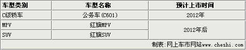 據(jù)了解,一汽紅旗品牌未來會有很多新產(chǎn)品投放市場,目前了解到2012年將推出的全新自主公務(wù)轎車,這款新車將是紅旗盛世的換代車型,產(chǎn)品的定位于紅旗盛世會有所不同。另外,紅旗品牌還將會推出禮賓車、檢閱車以及其他日常用車。其中紅旗MPV和SUV車型也將很快提上日程,在未來陸續(xù)推向市場。