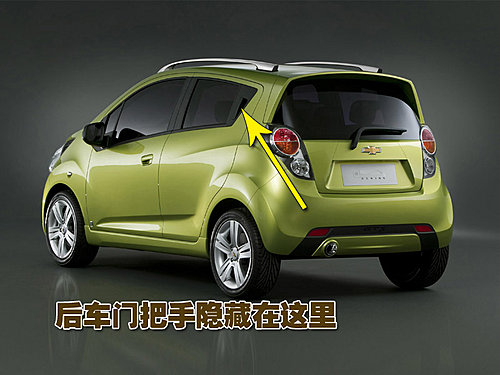 雪佛蘭Beat車型為一款五門掀背車型,該車的設計風格在科魯茲車型上也有所體現(xiàn)。雖然為一款五門車型,但整體看上去其更像是一款三門版車型,這是因為該車的后門門把手放置在C柱上,第一眼看上去很難分別出來。