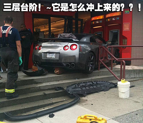 這輛售價(jià)在100余萬元左右的全新GTR跑車在海外發(fā)生一個(gè)令人匪夷所思的車禍,一位魯莽的駕駛員開車車闖入了溫哥華銀行!乍一看您一定會(huì)以為這是某部美式大片的拍攝現(xiàn)場(chǎng),而現(xiàn)實(shí)則不然,萬幸的是駕駛者并未因此而遭受嚴(yán)重傷害。