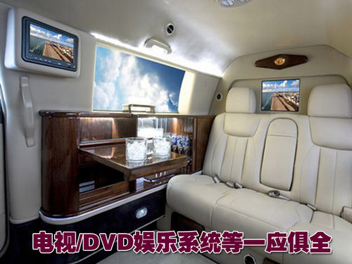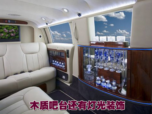上等的真皮裝潢、電視以及DVD娛樂系統(tǒng)、小型酒吧臺(tái)均是該車的必要配置,此外其還擁有WiFi 無(wú)線網(wǎng)絡(luò)系統(tǒng)。12伏的電源插口,不銹鋼點(diǎn)綴裝飾的木質(zhì)裝飾吧臺(tái)還有燈光作為點(diǎn)綴。