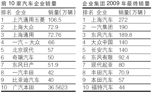 2009年國內(nèi)車市各細分市場的銷量份額進行了重新布局。最直接的反映就是車企的銷量排行榜也出現(xiàn)了新的變化,以經(jīng)濟型車為主力產(chǎn)品的車企也全面豐收。同時,國內(nèi)品牌集中度也進一步加深,通用大眾占據(jù)了總銷量的四分之一。