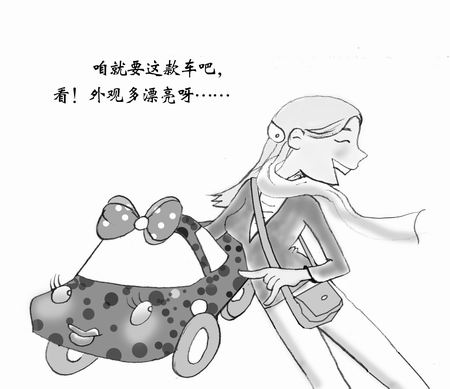 “大多數(shù)女性購車者購車僅憑著自己的第一印象,對車子外形要求往往特別挑剔,第一眼相不中的車型,無論性能如何好、別人如何推薦,一般都不再考慮,因此,一些外形特別引人注目的車型往往比較討巧!北本┈F(xiàn)代某4S店銷售人員告訴記者,女性購車與男性明顯的不同就是過于感性!巴庥^是女性買車時最關(guān)注的問題。女性顧客選車時,在一定價位內(nèi)的車型中,往往先看對外形和顏色是否滿意,然后再了解車的其他性能!