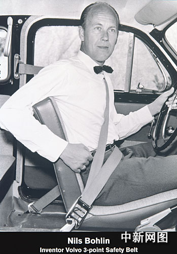 中新網(wǎng)1月16日電 2009年是三點式安全帶發(fā)明50周年,在汽車安全技術(shù)高度發(fā)達的今天,三點式安全帶仍然被認為是最有效的汽車安全保護措施之一。要保住生命是如此簡單,只需拉住安全帶扣,越過胸前,系上帶扣就可以了!如果您系上了安全帶,那么您在交通事故中幸免于難的機率就提高了50%。三點式安全帶不論現(xiàn)在還是將來都是汽車?yán)镒钪匾囊粋安全細節(jié)。這一切都要感謝沃爾沃(Volvo)汽車的工程師尼爾斯•博林(Nils Bohlin),他于1959年發(fā)明了汽車三點式安全帶。世界上也許沒有第二個人能像他那樣挽救如此眾多的生命。
