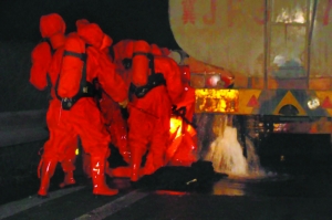 而泄漏口直徑約5厘米,破損的閥門很難修復(fù)。消防員找來樹枝,削成楔子才將閥門堵住。由于丙酮非常易燃,消防人員仍繼續(xù)用水龍對準(zhǔn)車身噴射稀釋。約一小時后,又用沙土掩埋路面液體,異味才消除。