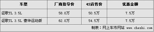 據(jù)4S店銷售人員介紹,目前謳歌TL在原來車型的基礎(chǔ)上增加了一款豪華運(yùn)動版車型,運(yùn)動版車型更換為19村外觀輪轂,并增加了擋泥板等套件,售價(jià)為62萬,F(xiàn)在消費(fèi)者購車最高可優(yōu)惠現(xiàn)金7.5萬元,優(yōu)惠后售價(jià)最低為50.5萬。作為一款豪華運(yùn)動型轎車,其在價(jià)格上擁有較大的優(yōu)勢。目前TL普通版的現(xiàn)車較為齊全,并且有多款內(nèi)飾顏色可供挑選,而運(yùn)動版還需預(yù)訂。