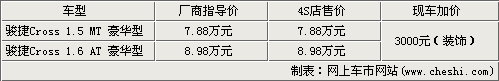 自6月18日,華晨汽車旗下中華駿捷Cross上市以來,市場(chǎng)對(duì)該車的關(guān)注度不斷上升。它憑借最為潮流的外觀、更加舒適的駕乘空間,給消費(fèi)者帶來跨界車的新感受。據(jù)筆者了解,北京目前購買中華駿捷Cross除個(gè)別經(jīng)銷商現(xiàn)車不加價(jià)外,其余經(jīng)銷商提現(xiàn)車均需加3000元的裝飾款。