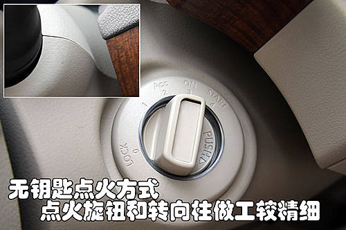 通過(guò)圖片我們可以非常明顯的看到,鑰匙旋鈕周?chē)忍幍哪>吖に嚤容^高,沒(méi)有發(fā)現(xiàn)太多的縫隙和粗糙的痕跡,不過(guò)轉(zhuǎn)向柱的做工還有提升的空間。