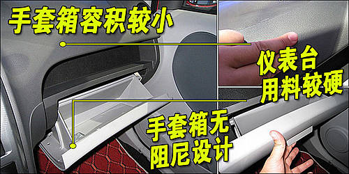 天津一汽威姿V1的手套箱沒有阻尼設(shè)計(jì),在打開手套箱后依靠重力自由下落,手套箱看起來比較小,所以只能存放一些小件的東西。