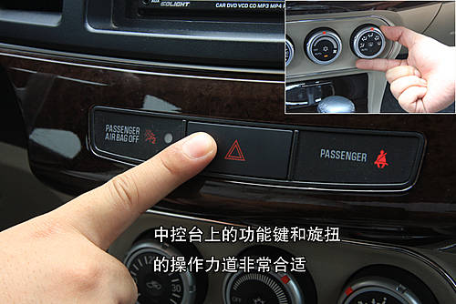 中控臺(tái)上的各個(gè)功能鍵的開(kāi)關(guān)和旋扭的操作力道非常合適,也非常接近,因而使用起來(lái)很舒服。