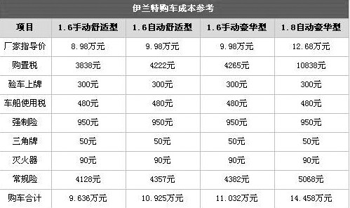 一、購車成本,伊蘭特1.6的排量性價(jià)比較好,1.8排量車型不僅購置稅沒有優(yōu)惠,而且裸車的費(fèi)用高出1.6很多。其中1.6手動(dòng)舒適型和1.6手動(dòng)豪華型更適合家庭用戶選購。