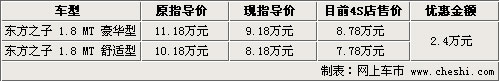 奇瑞東方之子在國(guó)內(nèi)自主B級(jí)車中頗有盛名,暢銷六年以來(lái),已經(jīng)逐漸成為國(guó)人的信任和驕傲。東方之子自從今年5月份官方降價(jià)2萬(wàn)以來(lái),北京市場(chǎng)反響積極。在此基礎(chǔ)之上,目前在北京市場(chǎng)購(gòu)買東方之子現(xiàn)車,還可以得到4000元的現(xiàn)金優(yōu)惠。具體優(yōu)惠車型見(jiàn)下表: