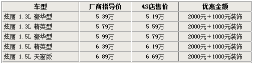 據(jù)4S店銷售人員介紹,長(zhǎng)城炫麗雖然上市時(shí)間較長(zhǎng),但現(xiàn)車銷售狀況卻表現(xiàn)一般,所以為了盡快進(jìn)入暑期的促銷旺季才開始優(yōu)惠銷售。另外,4S店銷售人員也表示,現(xiàn)車的車型和顏色并不是很全,現(xiàn)在購(gòu)買炫麗系列車型,消費(fèi)者不僅可享受現(xiàn)金優(yōu)惠,還可以贈(zèng)送地膠、腳墊、貼膜等價(jià)值千元的裝飾,但不能折現(xiàn)。