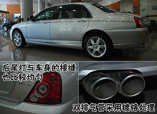 名爵MG 7L側(cè)面采用鍍鉻裝飾條,配合整個(gè)腰線,從車頭一直貫穿至尾部。名爵MG 7L的后尾燈與車身的接縫也比較均勻,而且周圍的鈑金工藝也非常好。另外,這款車型采用雙排氣管設(shè)計(jì),并且采用鍍鉻裝飾處理。