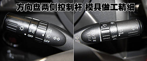 方向盤左右兩側(cè)控制桿為塑料材質(zhì)。無論是看上去還是觸摸時(shí)都能感覺到這部分材料的工藝質(zhì)量很好。