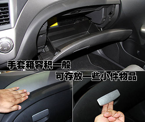 斯巴魯翼豹手套箱沒有阻尼設(shè)計(jì),在打開手套箱后依靠重力而自由下落,手套箱內(nèi)部空間比較小,可以存放一些小件物品。