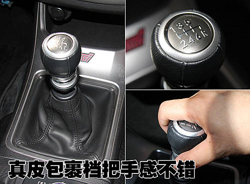 采用真皮包裹+亞光銀面板設計的擋把不僅是提升了檔次,而且手握的感覺也很不錯,檔位也比較清晰。
