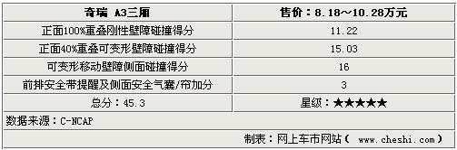 集A、B兩級優(yōu)點于一體的奇瑞A3,與A級車相比,更動感、更安全、更舒適,與B級車相比更超值、省油、省空間。在其身上,充分體現(xiàn)了B00級家轎的核心技術特征,可凝練為:5E4W!5’是指5星安全設計;‘E’是指ESP電子穩(wěn)定系統(tǒng);‘4’是指四連桿式后獨立懸架系統(tǒng),‘W’是指Wide(寬體)”。