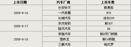 在“金九銀十”的銷售旺季中,許多汽車廠商都選擇在這個(gè)時(shí)候推出自己的新車。下周從16號(hào)-18號(hào)就有8款新車將集中上市,它們分別為新奧拓、奔騰2010款B70、長(zhǎng)城迷你SUV、標(biāo)致新307、陸風(fēng)X8、奔馳E雙門轎跑、雪鐵龍C4轎跑車和三菱新帕杰羅,其中自主品牌車型占了主要部分。汽車廠商選擇在這個(gè)時(shí)期集中推出新車,不僅可以在“金九銀十”的銷售旺季提升銷量,而且也為消費(fèi)者提供更多的車型選擇。