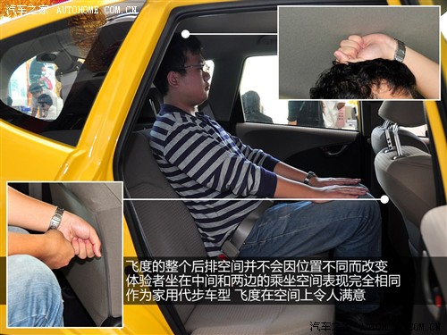 但飛度的后排腿部空間達(dá)到了兩拳,這是十分出色的表現(xiàn)。不過我們也注意到,飛度之所以能有寬裕的腿部空間,和其較單薄的前排座椅設(shè)計(jì)不無關(guān)系。最后值得肯定的是,飛度的后排地板比較平坦,中間乘客的腳可以在不妨礙旁人的前提下放在舒適的位置上。