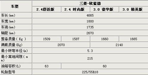全新一代三菱歐藍德的身尺寸達到了4665mm;1800mm;1735mm,保證了其內(nèi)部橫向空間及頭部空間的寬敞。2.67米的軸距為新歐藍德提供了舒適的內(nèi)部空間。新歐藍德的最小離地間隙為215mm,足以適應一般道路的路況,同時5.3m的最小轉(zhuǎn)彎半徑,也可以適應中國地區(qū)道路窄小的特點。60升的油箱,可以保障人們?nèi)粘3鲇蔚男枰?/p>