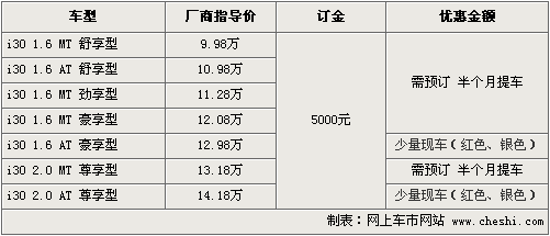 據北京現代北京地區(qū)4S店銷售人員介紹,現代i30因上市不久,新車貨源比較緊張,但現在已有少量1.6及2.0頂配車型現車到店,顏色以紅色、銀色為主。其余車型預訂最快半個月可提車,訂金為5000元。北京地區(qū)各4S店由于訂單不同,各店銷售的現車顏色有所不同。