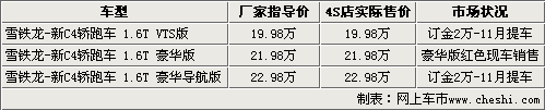記者從北京地區(qū)進(jìn)口雪鐵龍經(jīng)銷商處了解到,目前剛上市的C4轎跑車已經(jīng)有展車到店,并只有售價21.98萬元的一款車型可以現(xiàn)車銷售,而且只有紅色一款車型,提車不需要加錢。其余兩款車型均需要提前預(yù)定,訂金為2萬元,車主最早可以在11月份提到現(xiàn)車。