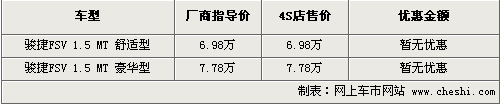 經(jīng)銷商透露,現(xiàn)在各店內(nèi)的FSV基本可滿足消費者的購車要求,車型及顏色也較為齊全,不再需要預(yù)訂購買。問及車型的優(yōu)惠,銷售人員表示,由于駿捷FSV為剛剛上市的新車,所以店內(nèi)暫時沒有任何形式的優(yōu)惠,還請消費者諒解。