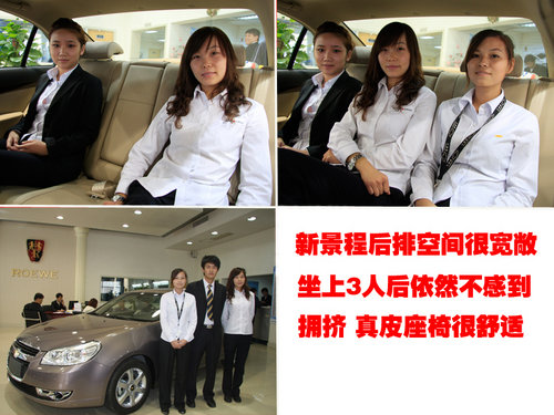 我們同樣又選擇了3名身高為165cm-170cm的美女,分別坐在新款景程的后排,來(lái)感受后排橫向空間的表現(xiàn)?此麄兊男θ菥涂芍篮笈趴臻g還是很令他們滿意的,的確表現(xiàn)也是如此。新款景程1807mm的車(chē)寬保證了車(chē)內(nèi)橫向空間,于“標(biāo)準(zhǔn)身材”的它不謀而合。