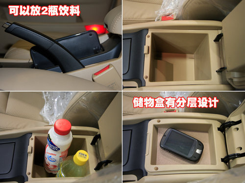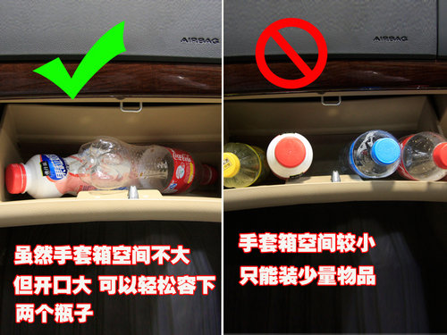 手套箱空間的確較小,雖然開口角度大,但空間不能令人滿意。只能放下2個600mm的飲料瓶,這一點(diǎn)新景程有些令人失望。
