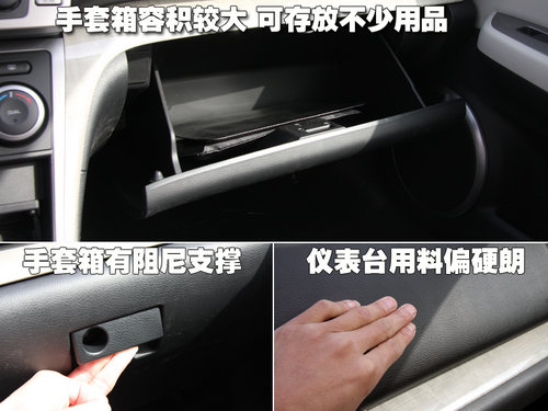 副駕駛位置的手套箱帶有阻尼設(shè)計(jì),打開時(shí)不會(huì)因重力自由下落,同時(shí)大容積手套箱能夠滿足車主日常放置常用物品的需求。儀表臺(tái)表面用料偏硬朗,但接縫十分勻稱。