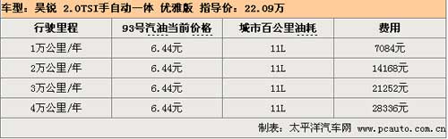 昊銳配備的2.0TSI發(fā)動機在轉速達到5100rpm時可以輸出147kw的最大功率,在1700rpm時可以產(chǎn)生280Nm的最大扭矩,動力性能更加強勁,無論在起步、加速、爬坡或是其他任何工況下,都可以讓駕駛者盡情地享受駕駛樂趣。根據(jù)網(wǎng)友實際油耗調(diào)查系統(tǒng)表示,昊銳2.0TSI百公里實際油耗為11L,行駛1萬公里需要花費7084元。