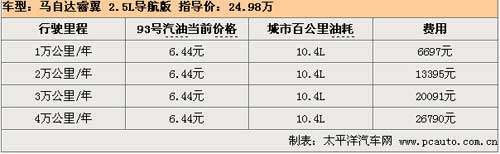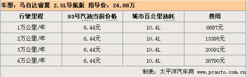 睿翼是我們對比的中高級車中油耗最低的一款車,城市百公里油耗僅為10.4L,對于一款2.5L排量的車型來說可謂十分出眾,而且馬自達(dá)廠商聲稱睿翼是可以使用93號汽油的而且不會對發(fā)動機(jī)造成影響,93號汽油比97號油每升便宜了0.41元!所以總體來說,假如車主每年行駛3萬公里的話,一年下來對比燃油費(fèi)用最高的銳志可以節(jié)省近5000元。