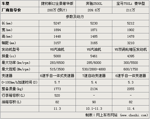 在動(dòng)力上,三款車都搭載是V8汽油機(jī),不過寶馬750Li配置的是雙渦輪增壓,因此在功率、扭矩上優(yōu)勢相當(dāng)明顯,相比來說捷豹新XJ要遜色一些,不過捷豹也有5.0L增壓發(fā)動(dòng)機(jī)只是前期暫不引入。在變速器方面,捷豹新XJ和寶馬750Li都配置是6速手自一體變速器,而奔馳S500L則配置是7速變速器。在加速性能上,配置v8雙渦輪發(fā)動(dòng)機(jī)750Li優(yōu)勢突出,0-100Km/h加速僅需5.3秒,不過三款車都在6秒以內(nèi),對于這樣的長軸距車型來說已經(jīng)不錯(cuò)了。