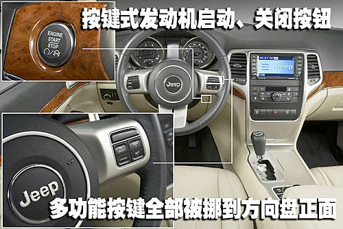 內(nèi)飾部分能夠明顯感覺(jué)到JEEP針對(duì)時(shí)下大型SUV市場(chǎng)客戶群體喜好所做出的改善,因?yàn)樵熊?chē)型確實(shí)是太過(guò)于單調(diào)和粗糙了。而新款車(chē)型的內(nèi)飾配以淺米色色調(diào)以及精致的真皮座椅和內(nèi)飾襯板以及實(shí)木裝飾,對(duì)于不太喜歡越野的消費(fèi)者來(lái)說(shuō)一定會(huì)更加喜歡JEEP的。