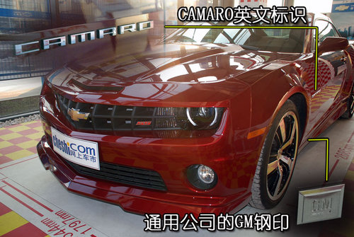 車身側(cè)面的CAMARO的英文標識象征了其真正的身份,不過沒有這個標識光看到這個外形,就知道此車是屬于“來者不善”型的,下面的GM鋼印代表了此款車型屬于通用,同時也透出了CAMARO在通用車系中的地位非同一般。