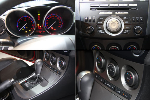 全車標配了真皮座椅用料似乎比舊款有所提升,手感和工藝都數(shù)上乘水平。前排座椅的坐墊相比舊款分別加寬了20mm和加高了35mm,提高了舒適度之余,也增加了包裹性和高速入彎時的承托力,有效減少了身體的側(cè)滑。馬自達的multi-information display(MID)系統(tǒng),包括一塊液晶屏、智能鑰匙、無鑰匙啟動系統(tǒng),而中控臺則標配了6碟CD,F(xiàn)M/AM和雙區(qū)域恒溫空調(diào)控制鍵。