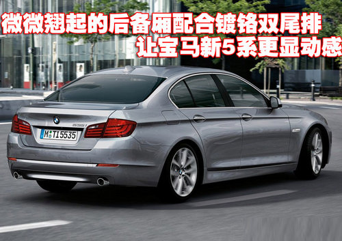 寶馬新5系尾燈雖然傳承經(jīng)典的“L”造型設(shè)計,但轉(zhuǎn)向燈卻同樣采用了LED元素,彰顯大氣的同時又不失前衛(wèi)與時尚。此外,微微翹起的后備廂配合鍍鉻雙尾排設(shè)計,讓寶馬新5系更顯動感。