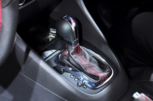 因此當(dāng)我們在廣州車展上見到這輛國產(chǎn)高爾夫GTI實車時,首先想到的就是看看它有沒有DCC系統(tǒng)。然而有些遺憾的是,我們在DSG擋把前的一排按鈕中并沒有發(fā)現(xiàn)那個標(biāo)著舒適和運動模式的小避震按鈕,同樣的位置被倒車?yán)走_的開關(guān)按鈕取代了。
