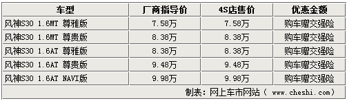 作為東風(fēng)風(fēng)神品牌下的首款家用轎車(chē),風(fēng)神S30在今年上半年就已經(jīng)正式推出市場(chǎng),但由于各種原因,很多4S店內(nèi)的現(xiàn)車(chē)并不齊。目前,東風(fēng)風(fēng)神S30隨著產(chǎn)能的不斷提高,全國(guó)各個(gè)4S店內(nèi)車(chē)型緊缺的情況已經(jīng)有所緩解。據(jù)了解,目前風(fēng)神S30雖然現(xiàn)車(chē)顏色仍不齊全,但仍可以滿足大部分消費(fèi)者的需求,并且出現(xiàn)了贈(zèng)送交強(qiáng)險(xiǎn)的優(yōu)惠政策。詳情如下: