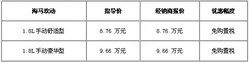 昆明合達(dá)購海馬歡動1.8全系 免全額購置稅
