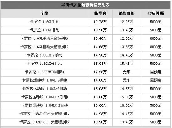 筆者目前了解,卡羅拉新推出的1.6天窗特別版車型目前有現(xiàn)車供應(yīng),但高配紀(jì)念版和運動版車型現(xiàn)車仍然供應(yīng)比較緊張,需要消費者預(yù)訂。目前天窗特別版車型最高可優(yōu)惠現(xiàn)金8000元,其他車型可優(yōu)惠5000元左右。全系十多款車型中,1.6天窗特別版相比性價比較高,消費者可以考慮購買。